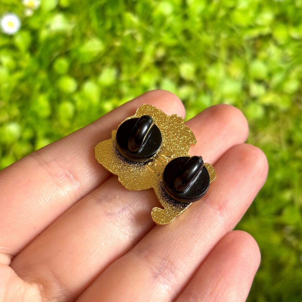 • Size: 2.5 cm (approx. 1 inch)• Hard enamel with gold plating• Two rubber backings