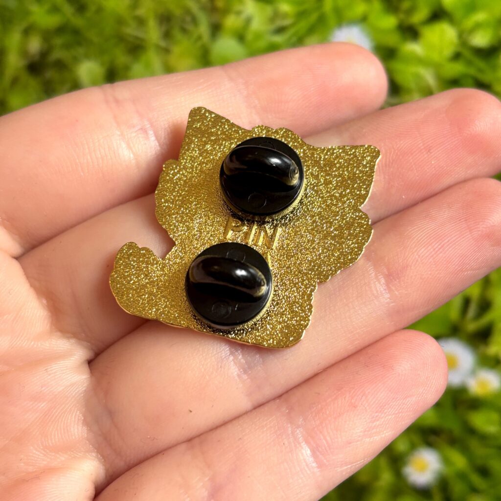 • Size: 2.5 cm (approx. 1 inch)• Hard enamel with gold plating• Two rubber backings