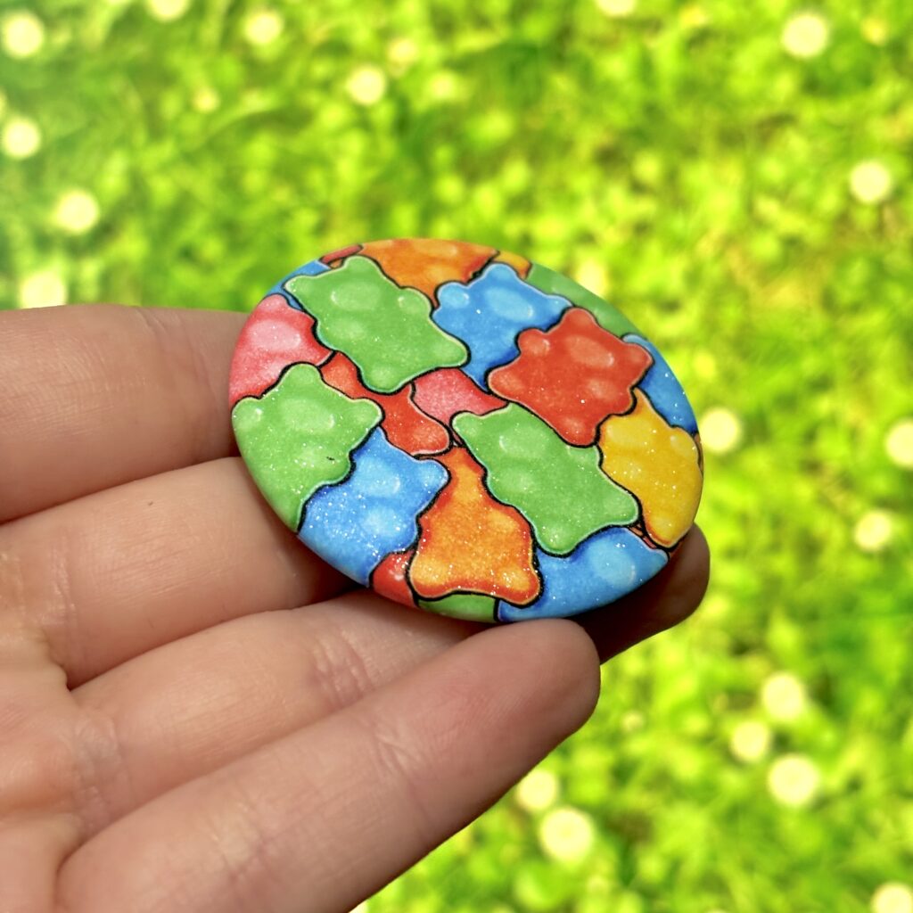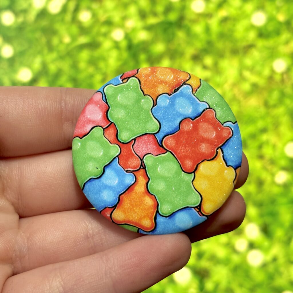 Glitter Button Pin – Bear Gummies